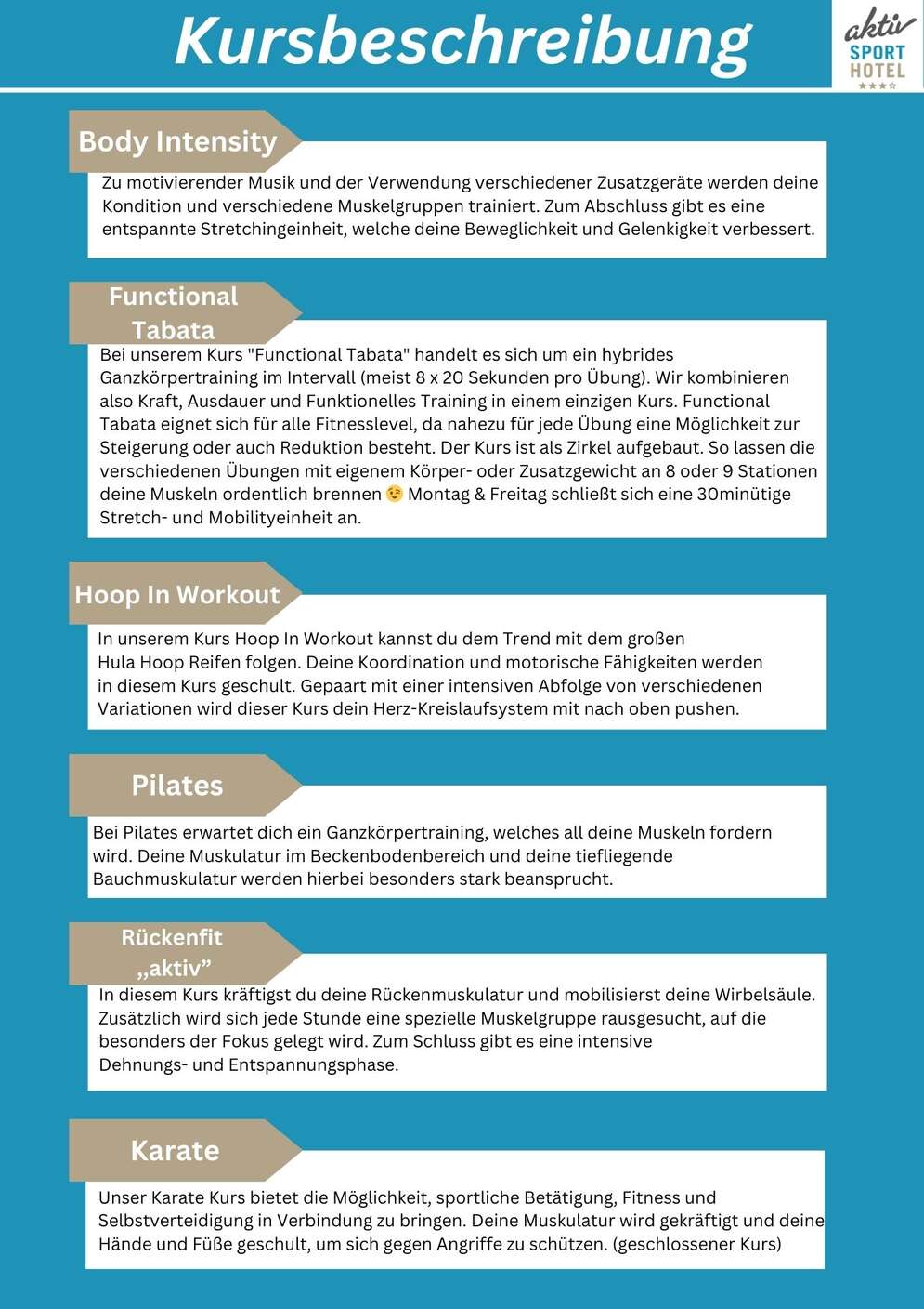 Eine Übersicht über unsere Fitnesskurse befindet sich weiter unten.