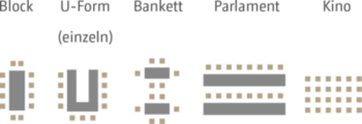 Unsere Bestuhlungsvarianten für Tagungsräume: